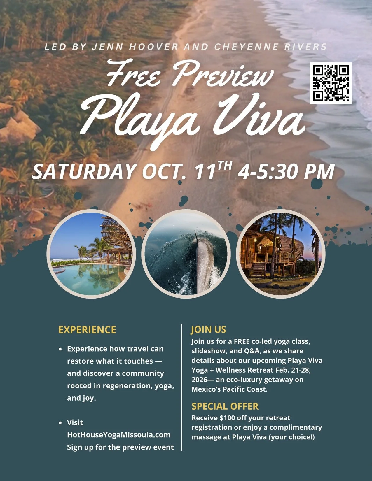 Join us for a co-led yoga class, slideshow, and conversation introducing our upcoming Playa Viva Yoga + Wellness Retreat — a one-of-a-kind eco-luxury experience on Mexico’s Pacific Coast.